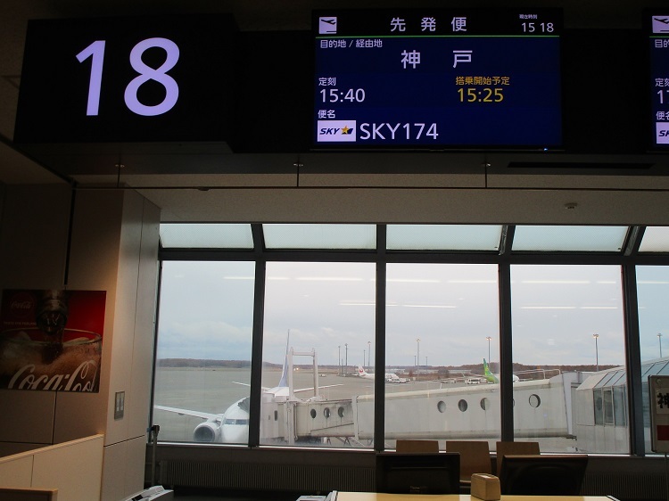 5.初めて来た『神戸空港』、ニュースでは同空港の国際化が報じられていましたが、「搭乗するロビー」を見ると意外とコンパクトで、北海道の地方空港(旭川、帯広、釧路、女満別等)と変わらないと感じました。