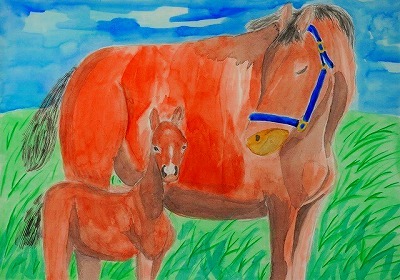 苫小牧市立錦岡小学校_6年生_梅庭滉歩【作品名】子馬をみつめる親馬