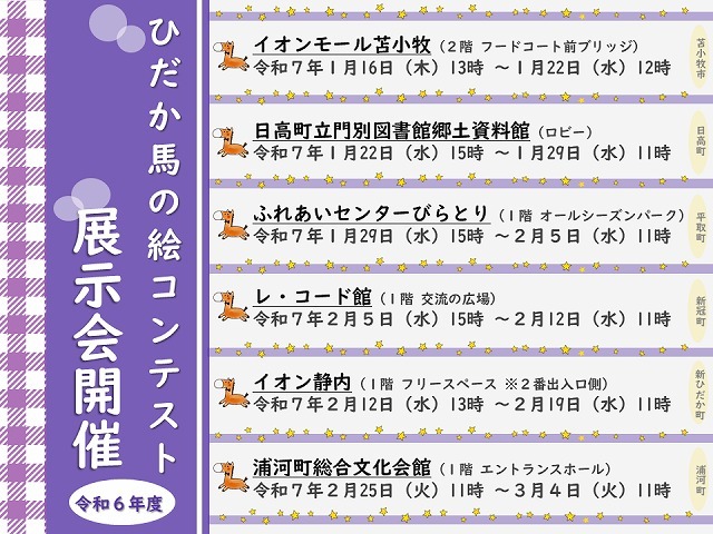 ご応募いただいた作品のうち、入賞11作品を次の施設で展示しますので、子どもたちが一生懸命に描いた作品をぜひ会場でご覧ください。 ※展示会は終了しました。